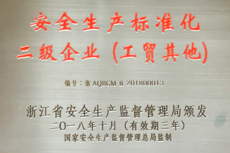 公司獲安全標(biāo)準(zhǔn)二級(jí)企業(yè)(工貿(mào)其他)